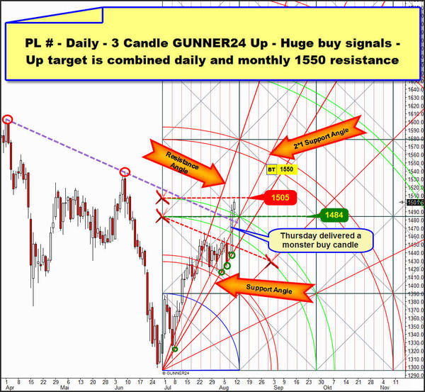 The big 4 in the precious-metals universe to wit gold, palladium, platinum and silver generate new and partially spectacular buy signals on Thursday and Friday. The liberation strikes in both currently strongest metals in the precious-metal complex – silver and platinum – are not only supporting the one of the complex that is sensed to be the weakest once more – gold, but pointing now to a longer lasting precious-metal rally/bounce till the beginning of September.