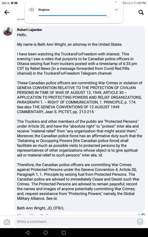 Freedom Convoy SOS CANADA and WORLD. Help us, help everyone. #irnieracingnews #freedomconvoySOS #freedomconvoy #Genevaconvention #warcrimes #policewarcrimes #ApplicationtoProtectingPowersandrelieforganizatio ns